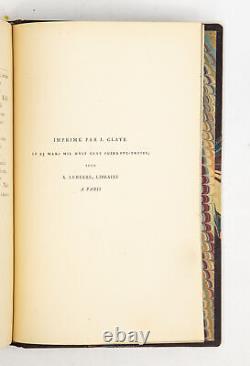 ; autograph correction with the date of the premiere (25 instead of May 8) Prologue for the reopening of the Folies-Marigny, set to music composed by Delphine Ugalde, whose compliments had flattered Glatigny so much. Paris: Alphonse Lemerre, 1873 [2] ff. Born from a sketch published in the. It was rejected by the Odéon and was not created until after the playwright's death at the Corneille theater on October 6, 1876. Glatigny will also make Brizacier, an actor torn from the theater that is decaying far from the stage, the hero of a poem. The Testament of the illustrious Brizacier. The unknown heroes, dear to my heart, have never known envy. But a complaint has never fallen from their lips. Why would they complain anyway? They are happy, their souls overflow with ineffable joys, starry skies unfold upon their foreheads. You pity their fate, but do you not see that it is you they want to give alms to?2, preface to Jules Claretie. Half violet morocco with corners, gilt head, bookmark, first covers preserved. Modern heraldic bookplate "JM" on the upper counter. Some handwritten bibliographic notes in pencil on the backs of the covers.