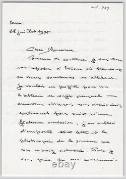 From Mirimonde, signed autograph letter Etourdi! President of the Court of Accounts, politician. He asks his correspondent to send him a photocopy of a letter he forgot in Evian. "You see, it happens at any age that one can be forgetful." Dimensions: 20.5 x 14.5 cm. Condition: See photos for more details. Number of pages: 2 pages. Autograph letters, old papers, antique books, photographs, engravings, stamps... We appraise and/or buy your letters, letter collections, and antique books throughout France. Careful shipping in a rigid, waterproof package within three days. Please allow for usual postal delays in addition. If you are not completely satisfied, return shipping is at the seller's expense for Europe.
