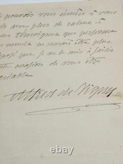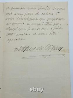 Vigny apologizes for having to postpone his meeting, assuring that his time with the recipient is too precious, and therefore proposes to reschedule the meeting in two days - between Tuesday and Thursday, days dedicated to the Académie française. You had hardly left me, sir, when I felt an infinite regret for having suggested Monday, a day when I will be expected for matters that I cannot delay.