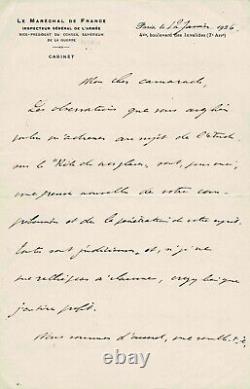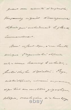 You seemed worried about a defensive organization that would chain the command plan. Therefore, it should not, in my humble opinion, be the case that the defensive organization is—as many wish—a function of the operational plan. The defensive organization, necessary at all times, and which depends on the geographical, political, and even moral conditions in which the country finds itself, is a matter of government. The operational plan is the business of command. Strongholds (whatever their form) in its projects as means, just as it does between personnel, equipment, and mechanical power.If I have the good fortune to meet you one day, I will specify, if you wish, what could be done today. Once again, all my thanks, my dear comrade, all my wishes for the new year, and the assurance of my highest esteem and my very cordial sympathy. Consult our manuscripts The Autographes des Siècles Gallery specializes in the sale and expertise of autograph letters and manuscripts of great personalities from past centuries.