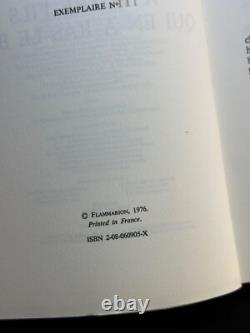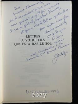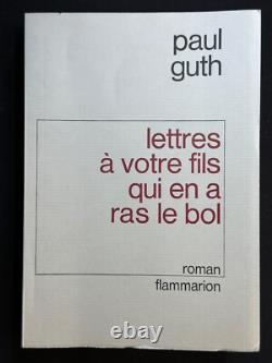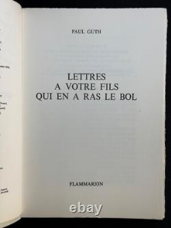 Paul Guth, Letters to Your Son Who Is Fed Up, Paris, Flammarion, 1976, 218 p. 21.5x15 cm, paperback, uncut. From this work, 15 copies were printed on pure Arches paper, of which 10 copies are numbered from 1 to 10, and 5 copies, not for sale, numbered from I to V; 30 copies on alfa vellum, of which 25 copies are numbered from 11 to 35, and 5 copies, not for sale, numbered from VI to X. Copy n°III/V of the limited edition on pure Arches paper, not for sale.