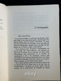 Love for the young, hope for their happiness and courage. All the exploiters of public illusions are vying for the young and ensnaring them with flattery. To the young and their parents, Paul Guth speaks the truth. Writing to his little nephew, Domi, Paul Guth sheds light on most of the issues facing youth: the relationship of the present with the past and the future, school life, tobacco, music, sexuality, coming of age at eighteen, homosexuality, speed, drugs, unemployment, manual labor, girls, love. A superb copy of this novel, in original edition, in limited edition, and with the author's dedication.