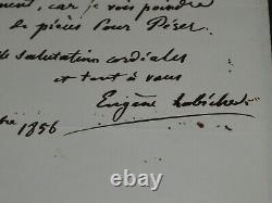 Eugène LABICHE Signed autograph letter to Hippolyte LEROUX "At Ernest's side". Signed autograph letter from Eugène LABICHE to his "dear collaborator" Hippolyte LEROUX about their comedy "At Ernest's side" 1856 1 page. Dimensions: 21 x 13.6 cm. Condition: See photos for more details. Eugène Labiche is a French playwright, born on May 6, 1815 in Paris and died on January 22, 1888 in Paris 9?.