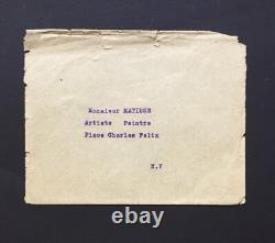 Henri MATISSE - Signed autograph letter - Zita and her friends - Odalisques - 1928. A major figure of the 20th century, his influence on art was considerable. A signed autograph letter addressed to his model "Mademoiselle Zita Rabat," Dax, 1928, 1 page in 4, headed "Grand café de Bordeaux," with autograph envelope preserved (envelope damaged and fragile). A letter from Matisse to one of his models, Zita Rabat - a famous figure in photography representing the painter drawing the model Zita as an Odalisque (1928, H Matisse archives). The series of Odalisques, orientalist works from his Nice period, allowed the artist to confront two essential aspects of his aesthetics: figures and decor. Matisse would say of his models, "The model, for others, is a piece of information. For me, it is something that stops me. It is the focus of my energy." Henri Matisse, quoted by Louis Aragon in "Matisse-en-France," Matisse, novel, Gallimard, 1998 [1971], p.