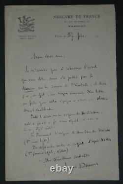 Louis DUMUR Signed Autograph Letter, article from Mercure de France. I am unable to find the article that you say was published by Mercure, on Eastern sources, and of which I do have a vague memory. Dimensions: 21.2 x 13.5 cm.